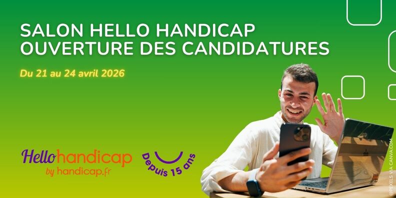 Le salon Hello Handicap, événement national 100 % digital dédié à l’emploi des personnes en situation de handicap, revient et se tient du 21 au 24 avril 2026 !