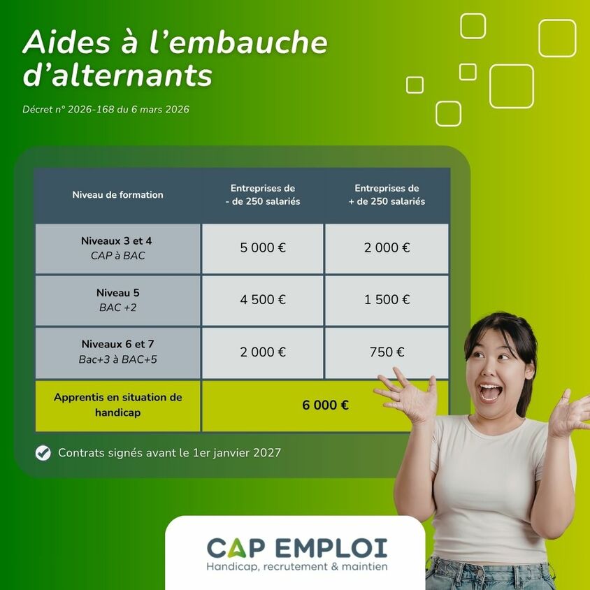 Aides à l’embauche d’alternants depuis le 6 mars 2026